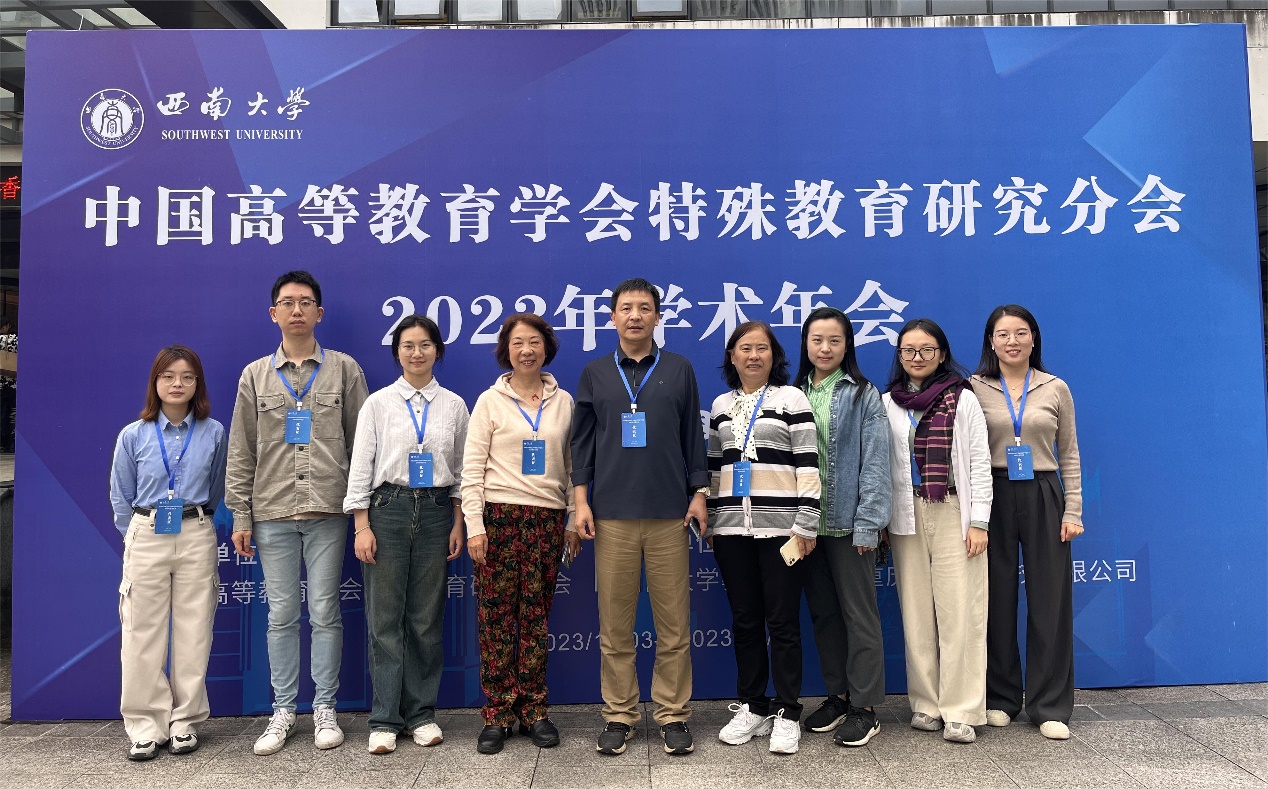 2023年11月4-5日,中国高等教育学会特殊教育研究分会在西南大学举办2023年学术年会。本次年会的主题为“落实党的二十大精神,推进我国特殊教育高质量发展”。年会汇集了来自全国70多所高校和27所特殊教育学校、康复机构的近400名特殊教育专家和工作者。在李拉院长带领下,我院共9名教师赴西南大学参加了本次学术年会,了解国内特殊教育发展最新动态,与国内学者共同探讨特殊教育发展面临的挑战及机遇。