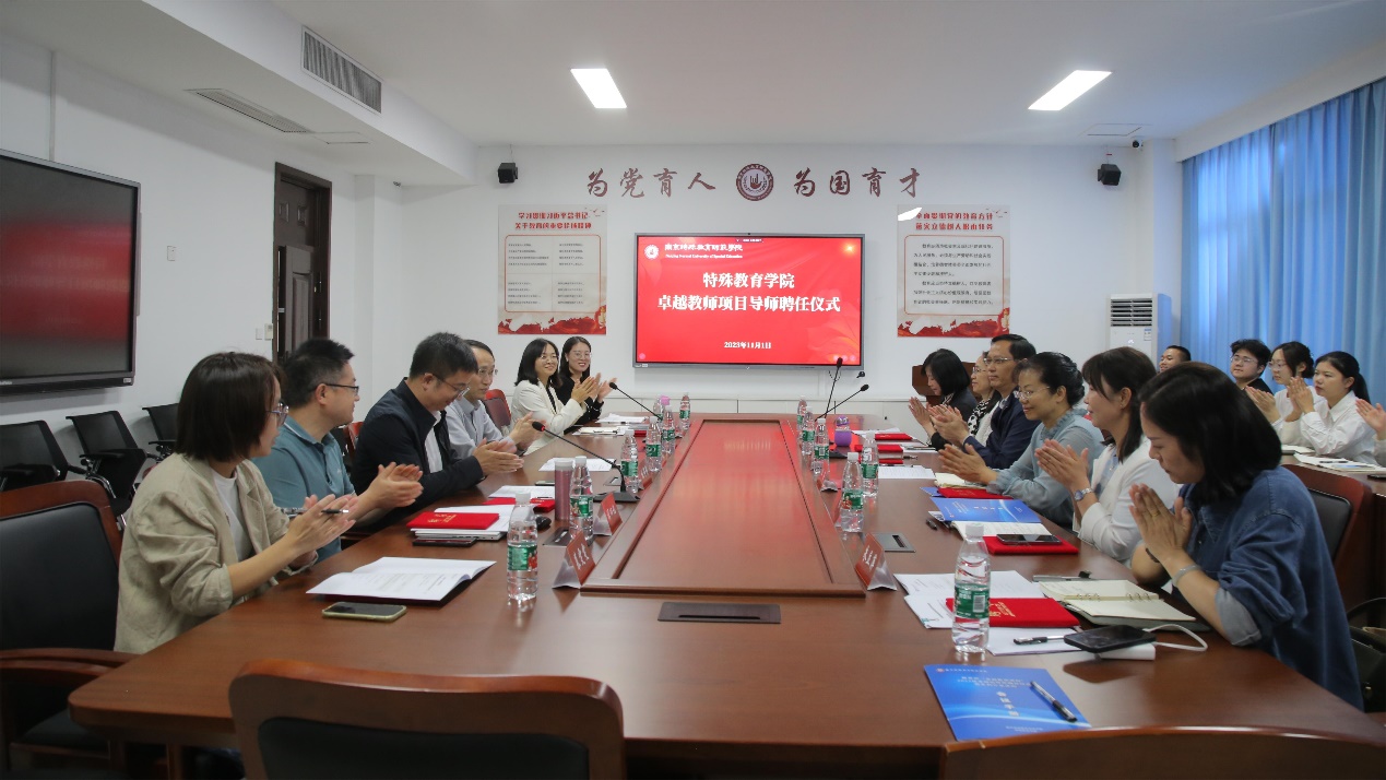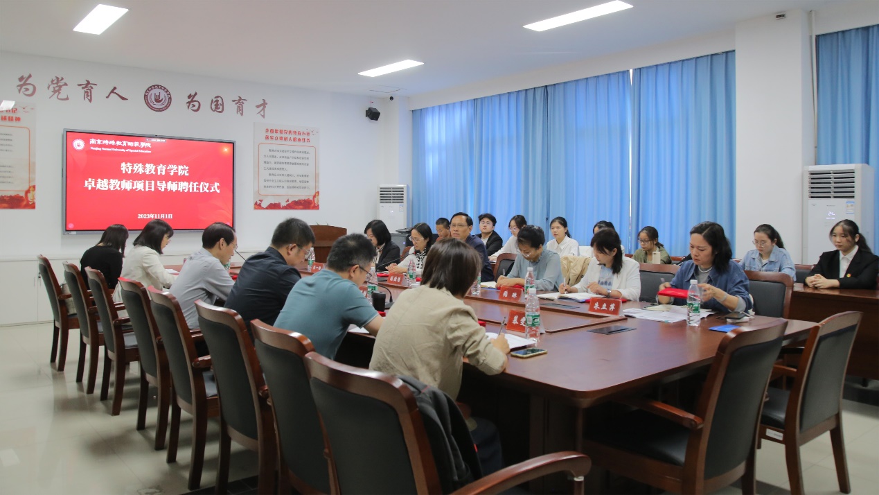 11月1日下午,永利yl23411集团举办特殊教育专业2022级卓越教师班导师聘任仪式暨“我与校长面对面”卓越教师培养系列沙龙。南京聋人学校党委书记陈源清、南京盲人学校校长任涛、南京育智学校校长王淑琴、浦口区特殊教育学校校长张琳、栖霞区特殊教育学校校长汤一梅、江北新区特殊教育学校校长朱立萍,以及永利yl23411集团党总支书记叶亮、院长李拉、副院长张伟锋以及全体校内导师出席。活动由学院副院长张伟锋主持,2022级卓越班全体同学和特教专业其他班级学生代表参加。
