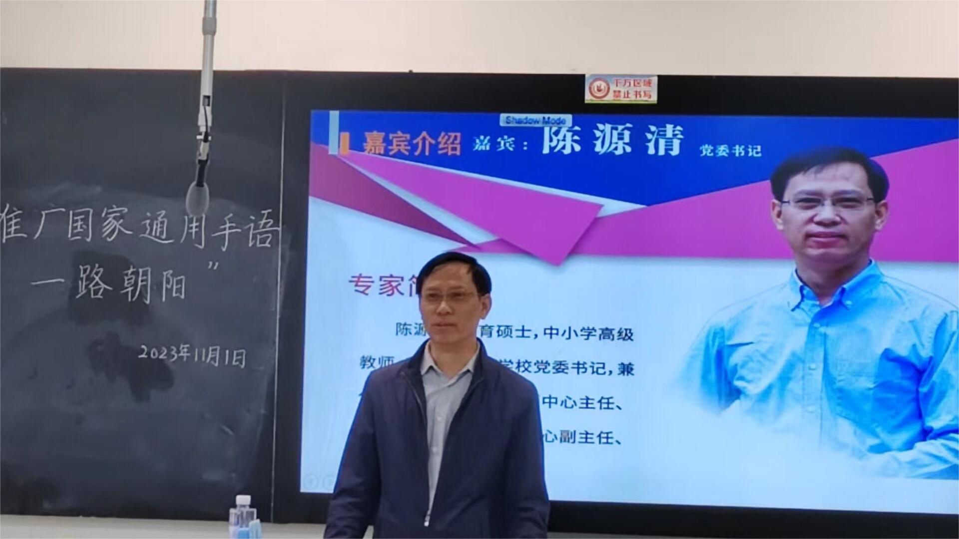 南京市聋人学校党委书记、江苏省听障教育资源中心主任、南京市特殊教育指导中心副主任陈源清老师在博雅楼3403开展“推广国家通用手语,一路朝阳”主题沙龙活动。