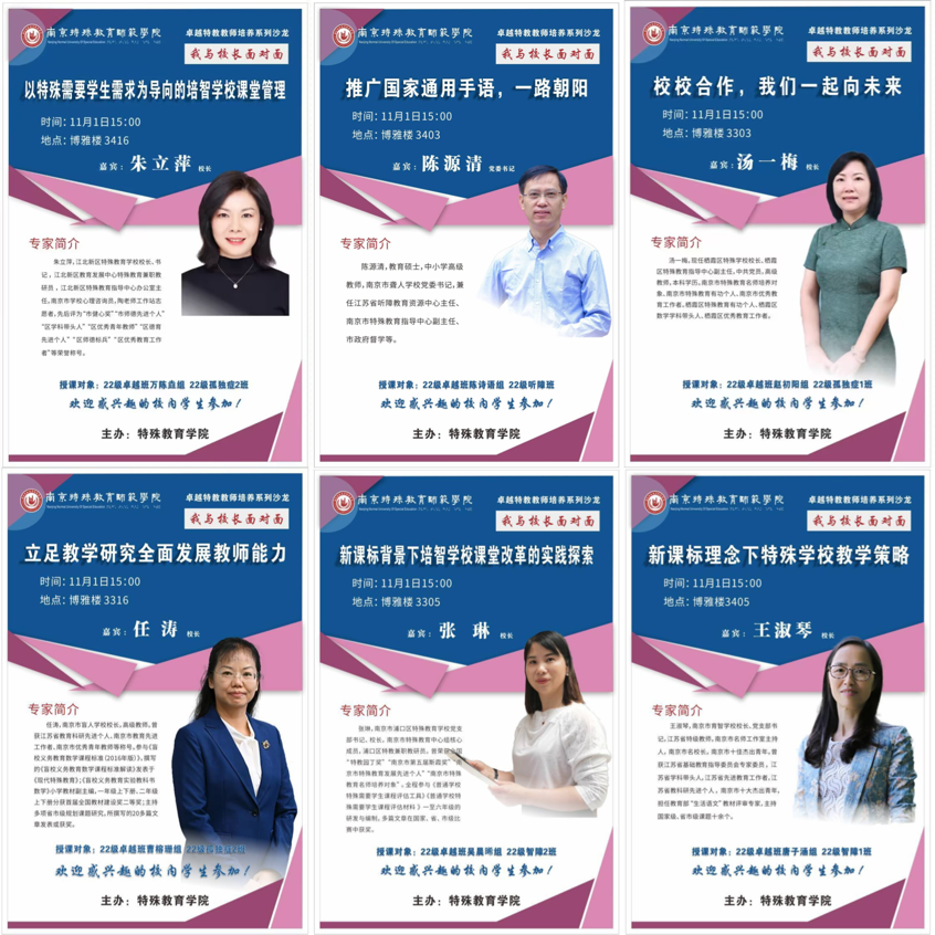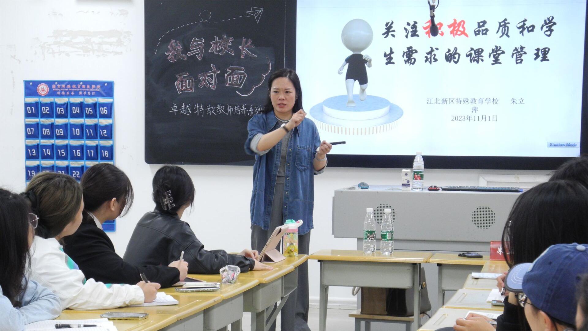 南京市江北新区特殊教育学校校长、江北新区教育发展中心特殊教育兼职教研员朱立萍老师在博雅楼3416开展“以特殊需要学生需求为导向的培智学校课堂管理”的主题沙龙。