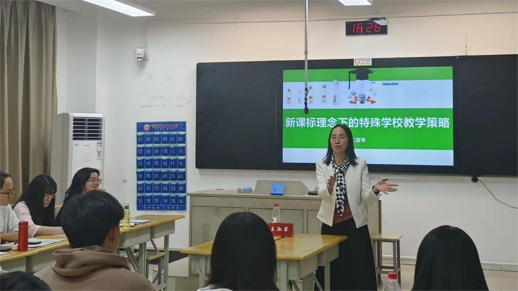 南京市育智学校校长、党支部书记、江苏省特级教师王淑琴老师在博雅楼3405开展了“新课标理念下特殊学校教学策略”主题沙龙。