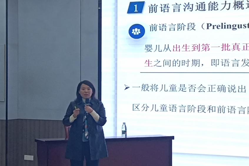 宿淑华教授报告的题目是“孤独症儿童前语言沟通能力的干预策略”。宿教授首先点明了前语言沟通能力对孤独症儿童的重要性,接着提出了孤独症儿童前语言沟通能力的干预策略。最后,针对未来研究趋势,宿教授提出未来可以从前语言沟通能力入手进行研究,做好前语言沟通儿童问卷,通过探索综合性新技术来提高ASD儿童的前语言沟通能力。