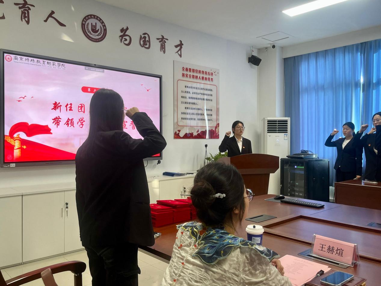 东风浩荡征帆满,豪情满怀谱新篇。新任团总支副书记王雯婕同学带领学生干部宣誓,积极表示要争做能吃苦、肯奋斗、有理想、敢担当的新时代特教先锋,为永利yl23411集团的高质量发展贡献青春力量!