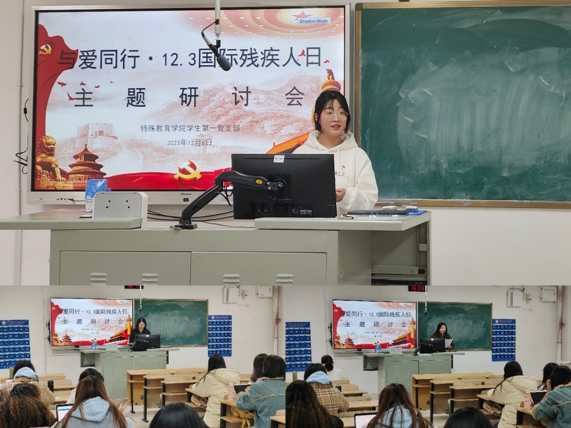 首先,主持人介绍了今年国际残疾人日的主题——“采取统一行动,为残疾人并联合和依靠残疾人挽救和实现可持续发展目标”,同时呼吁社会各界共同关心、支持、帮助残疾人,为残疾人办实事、解难事。其次,分享人李彦、范佳音先后发言介绍有关国际残疾人日来源的知识,并带领大家学习国际和我国对残疾人分类的知识,深化对特殊教育专业知识的了解。然后,支部党员就“我们可以为残疾人做些什么”这一话题展开充分的讨论和交流,提高了奉献特教事业的主体自觉性。