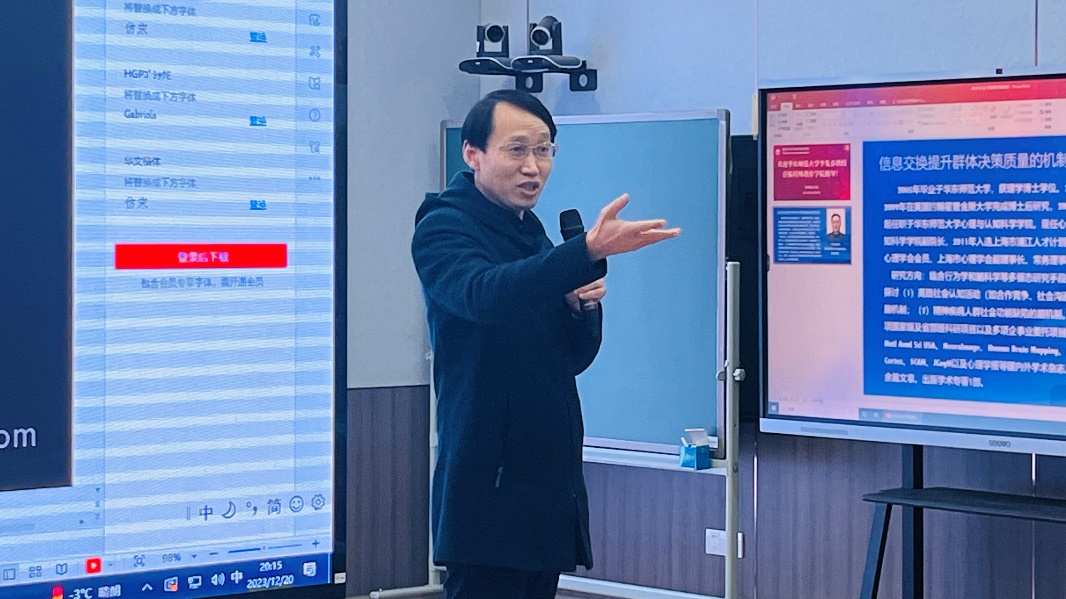 12月20日晚,李先春教授为现场师生带来题为《信息交换提升群体决策质量的机制探讨》的学术讲座。李教授在讲座中回顾了其研究组近期相关的研究工作,以基于脑电或近红外成像的超扫描技术,探讨不同方式的信息交换情境下的群体决策过程,发现脑间活动同步能很好地刻画信息交换提升群体决策绩效的有效客观标记物,并提出人际互动下的群体决策认知与脑机制模型。李先春教授的讲座生动有趣地阐明了课题研究的逻辑,激发了与会者的现场热烈讨论。李先春教授热情解答了师生的提问,并分享了有关脑科学研究的最新学术前沿信息。叶亮书记在总结中对心理学系学生的未来发展提出了殷切期望和明确的学习生涯规划指导。