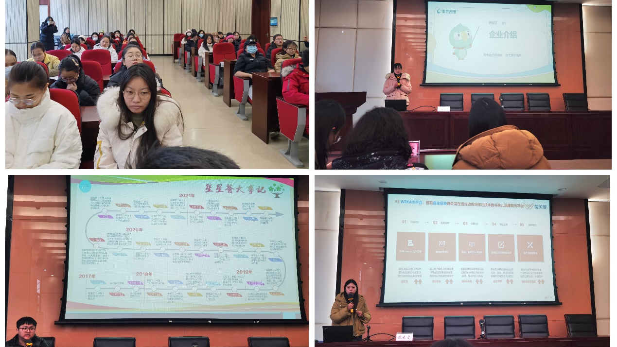 12月26日上午,2023年心理学系毕业生招聘系列宣讲会在实验实训大楼103室顺利举办。本次宣讲会的受邀机构包括南京星星荟、东方启音(南京)、南京微关爱、南方贝贝、骥德心理、无锡慧成等六家儿童中心,主要面向心理学专业和特殊教育专业大三、大四学生开展。