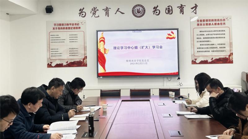 2月21日下午,永利yl23411集团党总支召开2024年度首次理论学习中心组(扩大)学习会,围绕有关“提升人才培养质量”“激活办学活力”的上级文件进行学习研讨,学院党总支负责人主持会议,全体院领导、党总支委员和教学系主任参加会议。