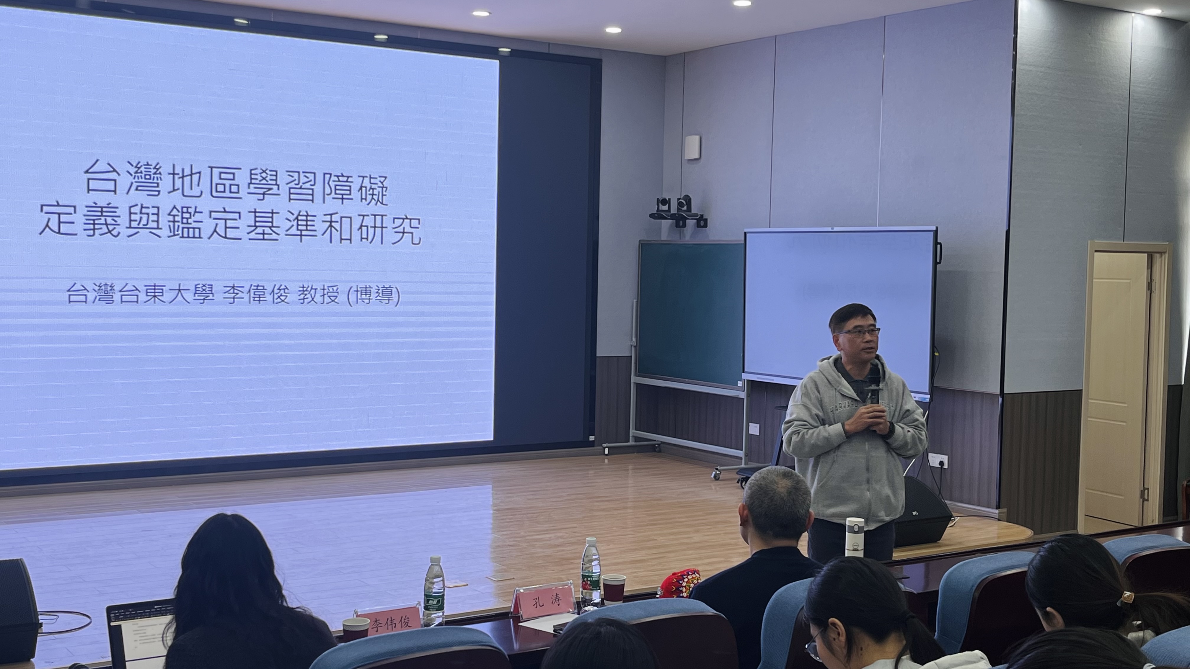 讲座伊始,李伟俊教授以富有激情的演讲风格,吸引了在场师生的注意力。他结合自己丰富的学科研究经验,分别从学习障碍的定义、鉴定标准、筛选流程等方面,生动介绍了台湾地区学习障碍的相关研究进展。李教授强调,面对学习障碍这一专业领域,需要从多个角度进行深入思考和实践。