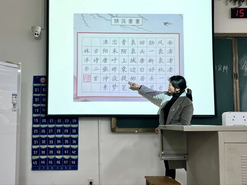 讲座伊始,刘学老师以提问的方式巧妙引出了讲座的主题——钢笔字。她深入浅出地介绍了钢笔字的评价要点,强调了认真书写钢笔字的重要性,激发了同学们对书法的浓厚兴趣。随后,刘老师详细讲解了笔顺规则,并给出了诸如注意留白、收放对比等宝贵的书写建议。