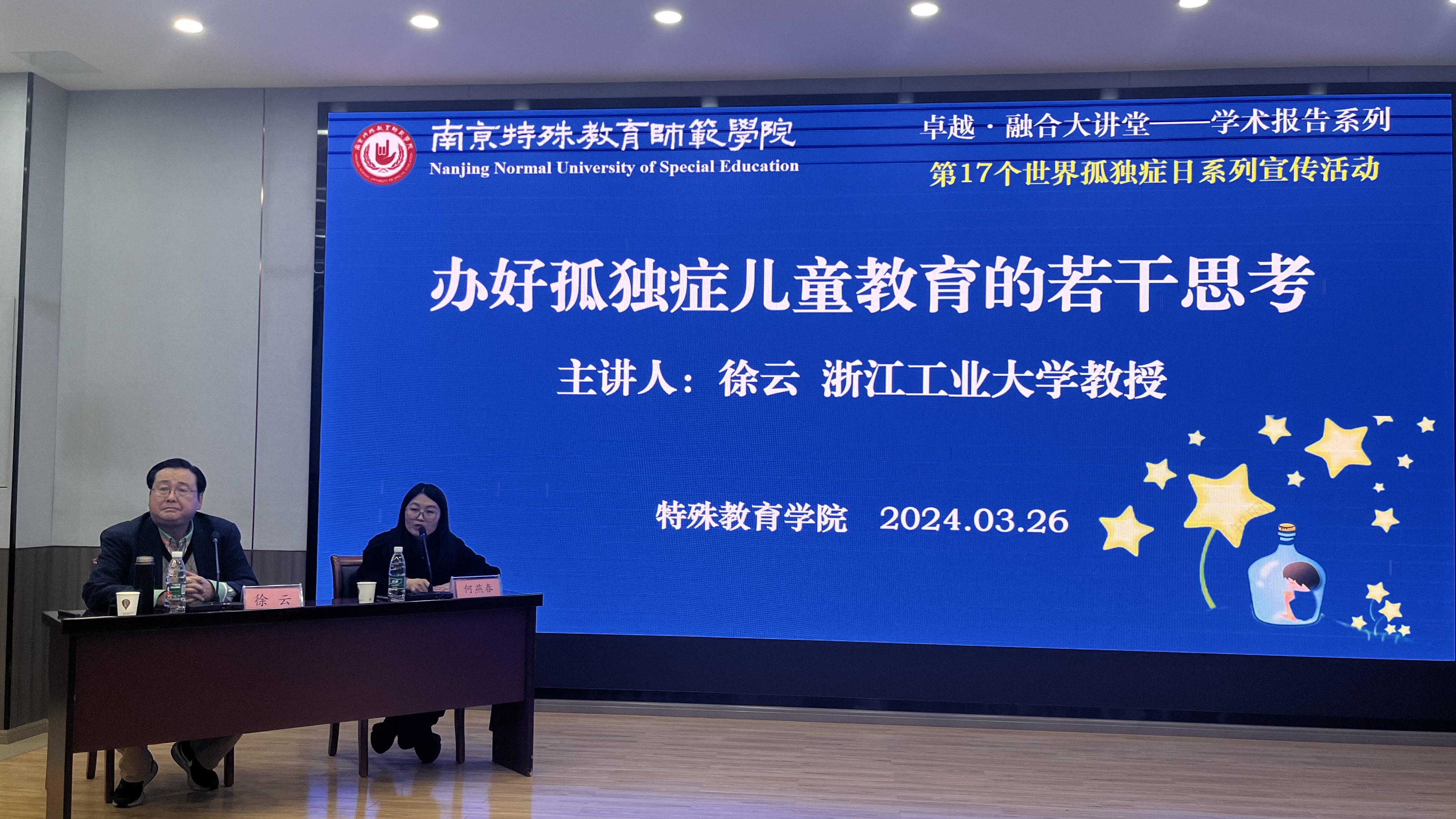 2024年4月2日是第十七个世界孤独症日。为增进特殊教育专业师范生对孤独症教育的了解,永利yl23411集团于3月26日下午在博远楼106报告厅开展以“办好孤独症儿童教育的若干思考”为主题的讲座活动。本次讲座特邀yl23411集团、浙江工业大学特聘教授徐云为主讲人,讲座由永利yl23411集团副院长何燕春主持。