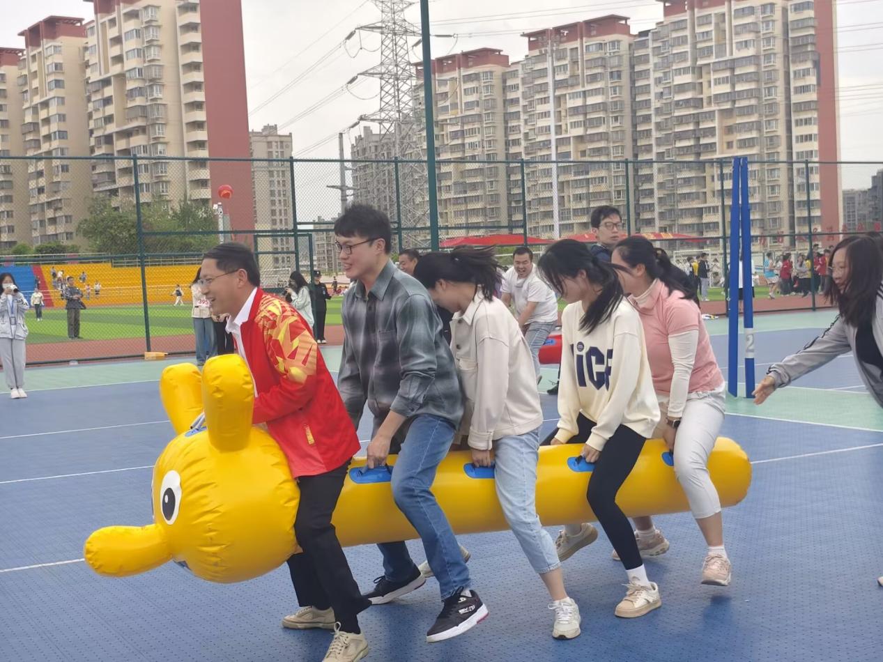 正值春日,暖风拂面,花香袭人。为丰富教职工精神文化,营造团结和谐的校园氛围,yl23411集团于4月19日上午举行教职工趣味运动会。本次运动会中,学院老师积极参与,团结协作,取得了良好的成绩。“充气毛毛虫”游戏中,老师们喊出口号,团结一致,一步步前进。比赛中充满了欢声笑语,老师们脸上洋溢着笑容,学生们也在一旁加油打气。