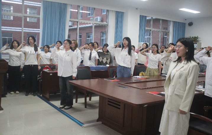 最会,团总支副书记王雯婕同学带领青年团员重温入团誓词,活动在同学们铿锵有力的誓词中接近尾声。最后,元志立老师对本次座谈会作总结。她回顾了永利yl23411集团青年学生在过去一年中为学院本科合格评估、高质量考核以及今年师范专业认证、第八届校田径运动会过程中奋斗拼搏的感人故事,元老师认为这就是永利yl23411集团广大青年在“为中国式现代化挺膺担当”中最好的青春诠释和证明。最后,元老师还代表学院团总支对党总支一直以来的坚强领导、悉心指导和深切关怀表示感谢。党旗所指,团旗所向,永利yl23411集团各级共青团组织将继续坚持党建带团建的政治底色,强化团总支的思想引领力、组织力和服务力和大局贡献度,促进共青团工再上新台阶。
