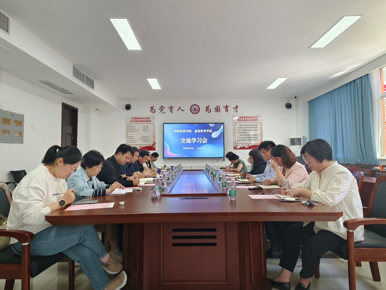 5月14日下午,在博雅楼2401会议室一场旨在深化交流、强化合作的交流学习会在此隆重举行。康复科学学院全体班子成员、系主任和教师代表来我院开展学习交流,共同探讨院办校改革、师范类专业认证、教育学重点学科建设、孤独症儿童研究、联合实验室建设、优质实习基地共建共享、康教融合背景下的协同育人以及面向特教学校和儿童康复中心的社会培训项目合作开发等议题。会议由学院党总支书记章小军主持。