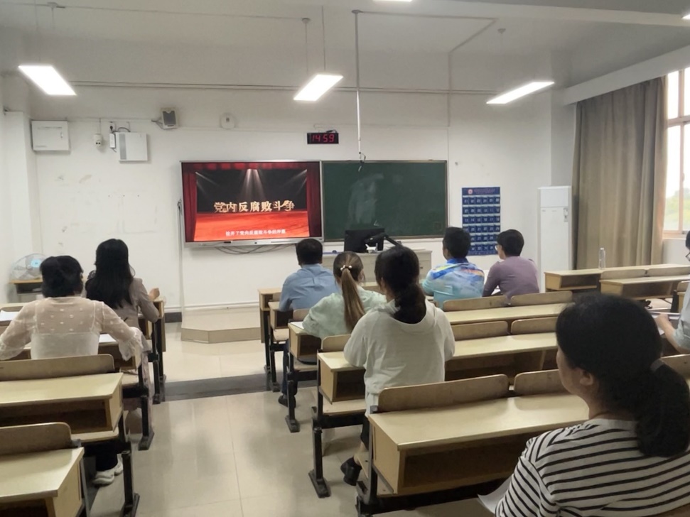 在学习会上,教师第一党支部首先集体观看廉政教育系列参考片《一体推进不敢腐、不能腐、不想腐》和《百年“纪”忆》。通过观看廉政教育片,了解党在不同历史时期有关纪律建设的重大事件、重要会议、重要人物和重要制度,深刻理解我们党自成立之日起,就把纪律镌刻在党的旗帜上,进一步领会习总书记关于“一体推进不敢腐、不能腐、不想腐”的最新论断和重要指示。