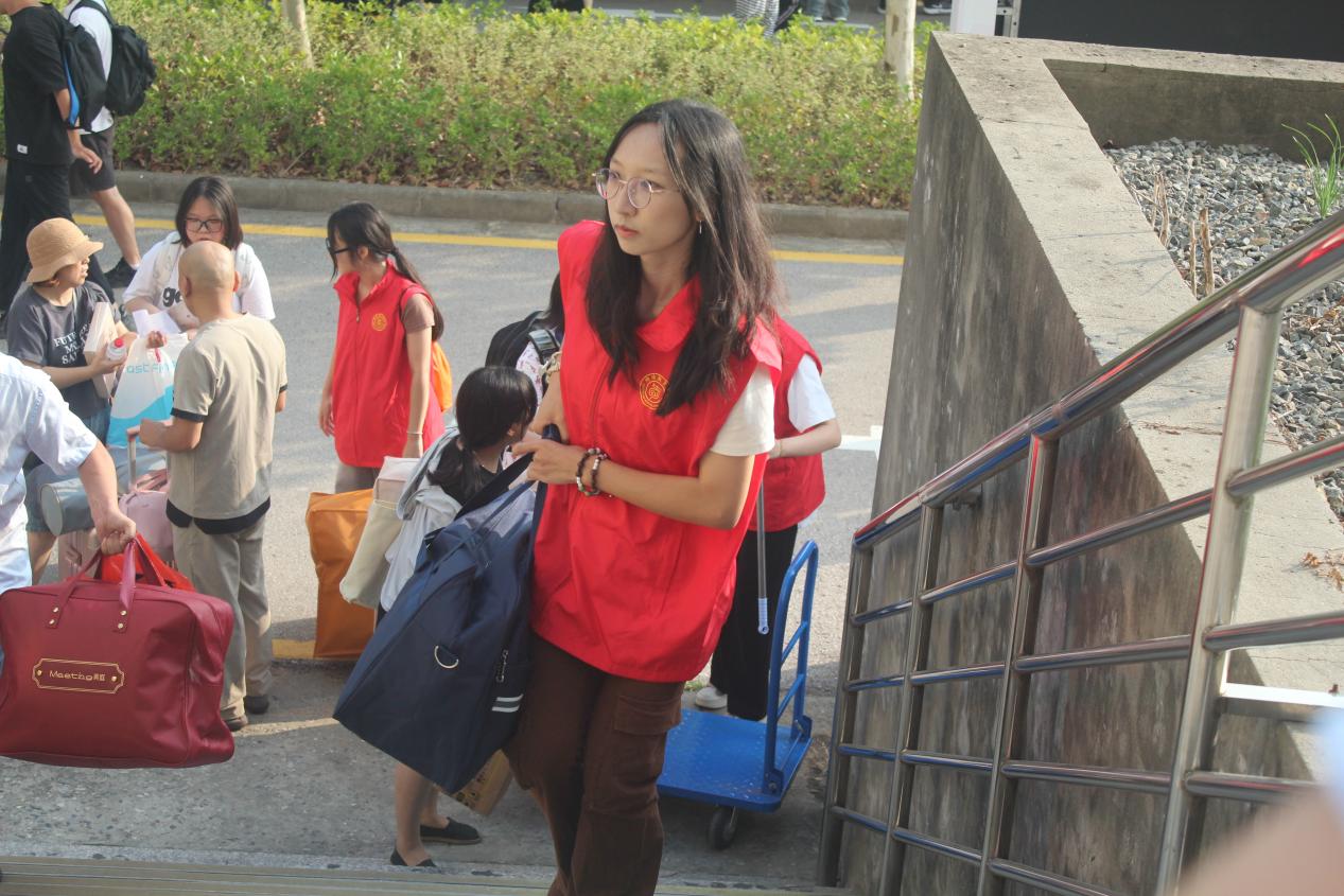 迎新现场,“志愿红”犹如烈焰般炽热,映照出青春最绚烂的底色。身着红色马甲的志愿者们,服务之细致,态度之周到,宛如一缕清风,拂过新生的心田。他们积极引导,悉心帮助。搬运行李过程中,他们冒着高温、不惧酷暑,不辞辛劳,团结协作,用汗水浇灌着奉献的花朵,以实际行动诠释着志愿者的博爱、奉献与互助精神。在引导的过程中,他们耐心解答、细心聆听,为家长与新生们解疑答惑,备受新生和家长称赞,展现出永利yl23411集团学子良好的文明素养和精神风貌。