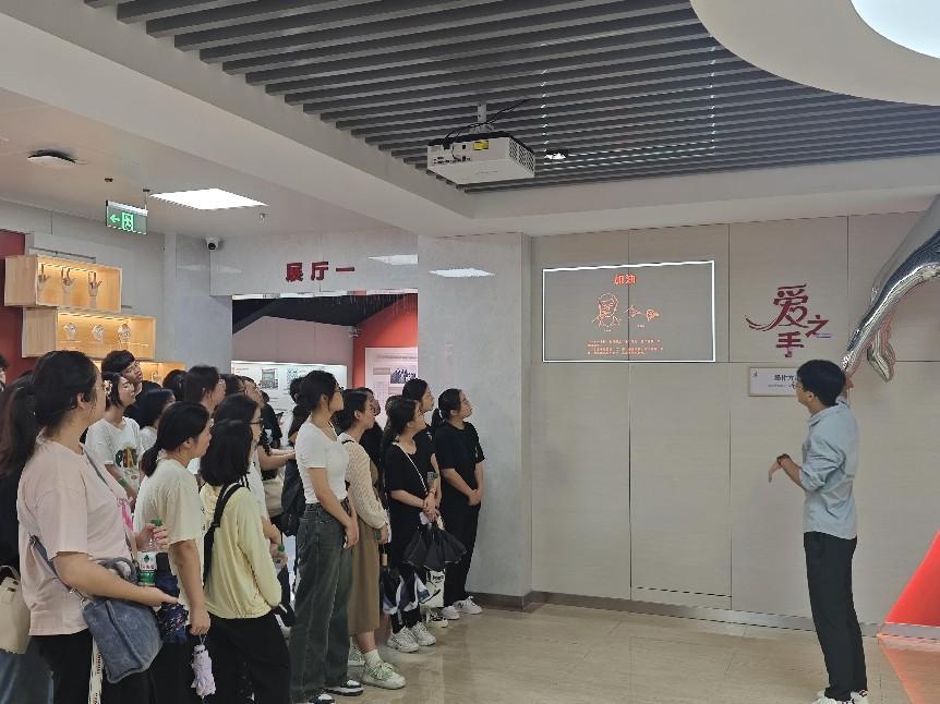 同学们受邀参观南京聋校刚刚建成的“手语博物馆”。手语作为听障人士交流的重要工具,不仅是国家语言文字的组成部分,更是促进听障人士社会参与感和归属感的关键。同学们兴高采烈、有序步入手语博物馆,一个个充满历史厚重感与现代创意交织的空间展现在眼前。作为国内第一所手语博物馆,馆内陈列着各种手语发展演变的资料,全面展示了手语起源与发展脉络、手语研究有、手语推广和手语文化,每一件展品都是无声世界中情感与智慧的结晶。除此之外,馆内还陈列着许多高科技互动装置,如人工智能翻译体验区、手语线上视频课程展示区,同学们满怀兴趣地与虚拟手语翻译进行交流互动,互联网拉近了学习的距离,提高了手语学习的便利。通过参观博物馆,同学们深刻感受到了手语与科技融合的魅力,对手语翻译专业及职业发展有了极大的期待。