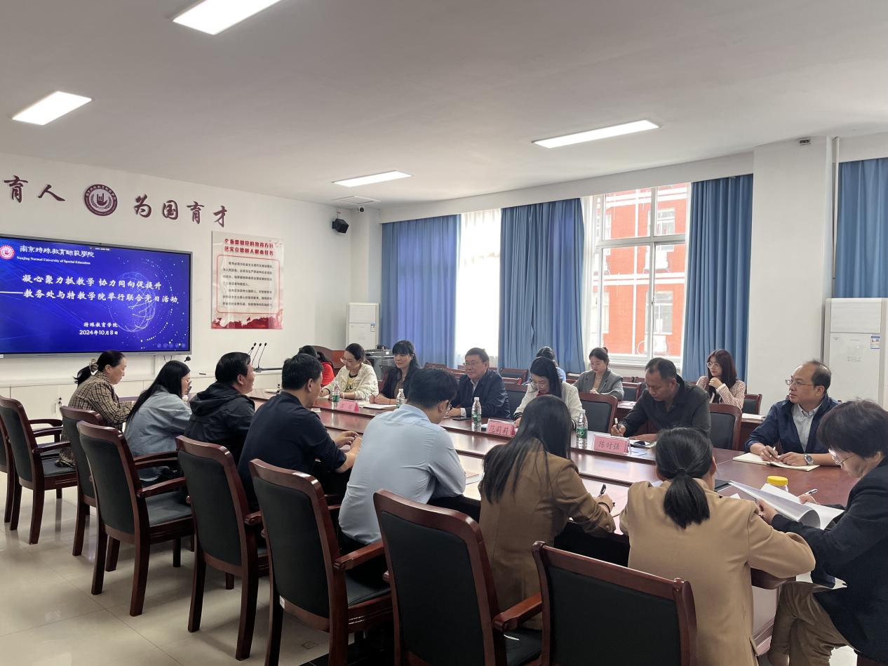 10月8日下午,机关第四党支部书记、教务处处长范莉莉带领教务处工作人员一行8人来到永利yl23411集团,以“凝心聚力抓教学,协力同向促提升”为主题与学院班子成员联合开展党日活动。活动由学院党委书记章小军主持,校党委常委、副校长陈克军全程参加活动。