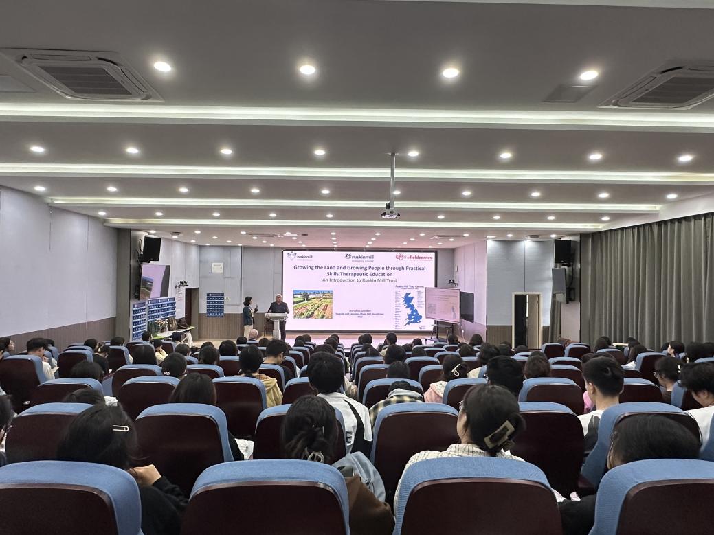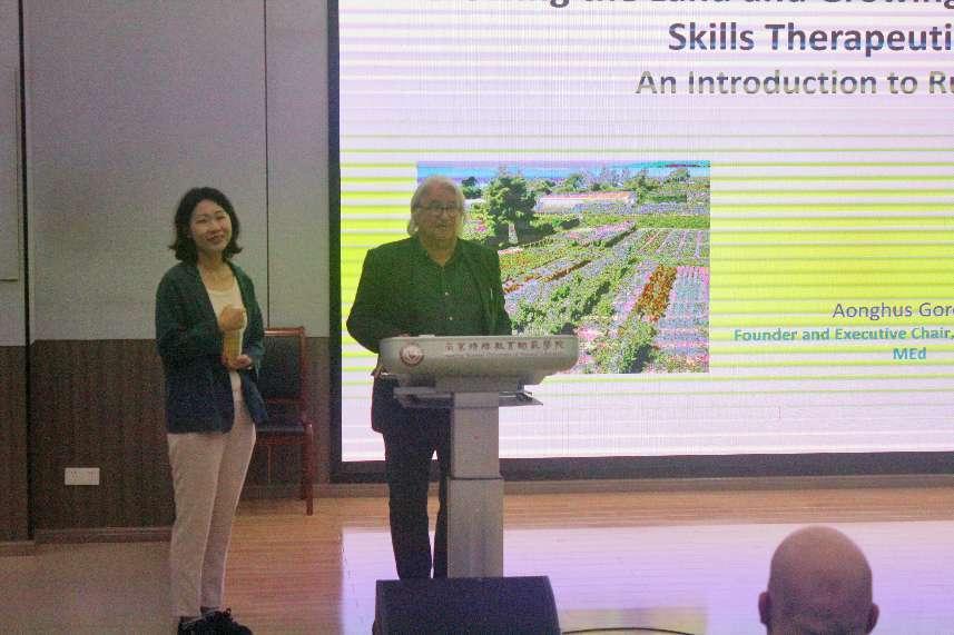 讲座伊始,安格斯先生作为Ruskin Mill Trust(RMT)的创始人及执行主席,首先介绍了自己与中国的深厚渊源。他表达了对中国文化的热爱,并分享了通过园艺活动训练特殊孩子,特别是孤独症儿童的独特教学方法。安格斯先生指出,园艺活动不仅能够培养孩子们的动手能力,还能帮助他们建立与自然的联系,从而促进其全面发展。