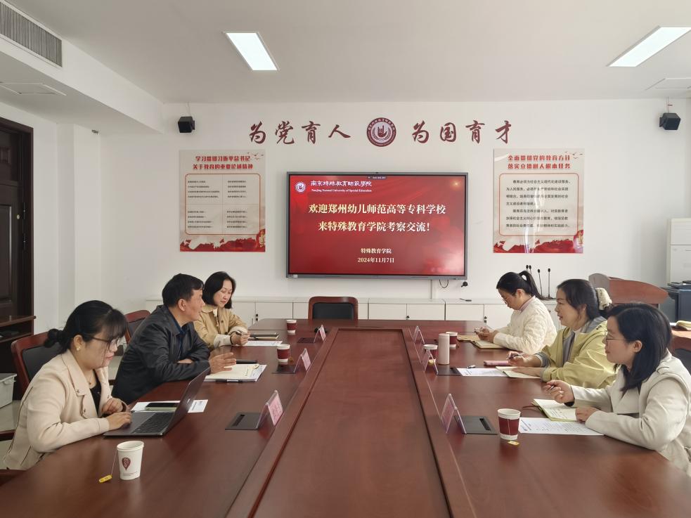 11月8日,郑州幼儿师范高等专科学校永利yl23411集团一行来到永利yl23411集团进行调研交流。双方在博雅楼2401会议室举行了交流会,郑州幼专永利yl23411集团副院长张怡、教研室主任肖春凤及专任教师郭淑芳出席会议。本次交流会由永利yl23411集团党委书记章小军主持,副院长陈琳及特殊教育系教师郎倩倩参与交流。