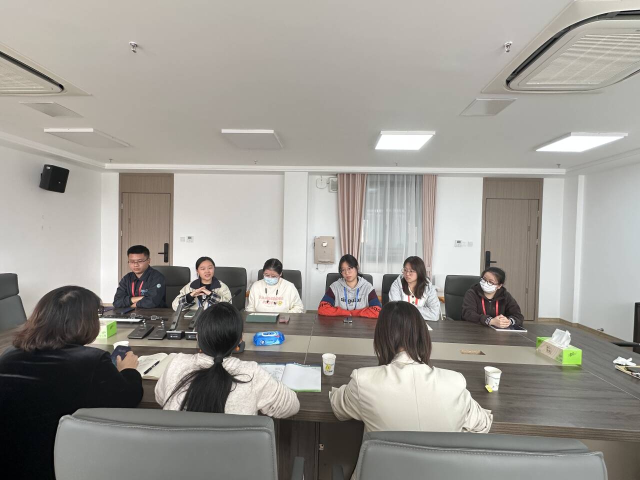 座谈会上,鼓楼特校彭主任详细介绍了实习生们的工作内容、生活状况以及所面临的挑战。她高度赞扬了实习生们勇于担当、无私奉献的精神,能够灵活运用所学知识,积极参与学校的各项活动,与学生们建立了深厚的感情。同时鼓励实习生们要珍惜机会,深入了解特殊教育领域的需求与特点,不断提升自己的专业素养和教育教学能力。接着,每位实习生结合自身的实习情况阶段性总结了自己的收获、表明未来努力的方向,同时针对学院课程设置提出了自己的想法。