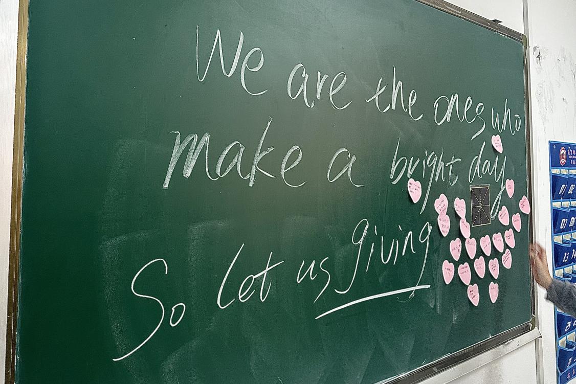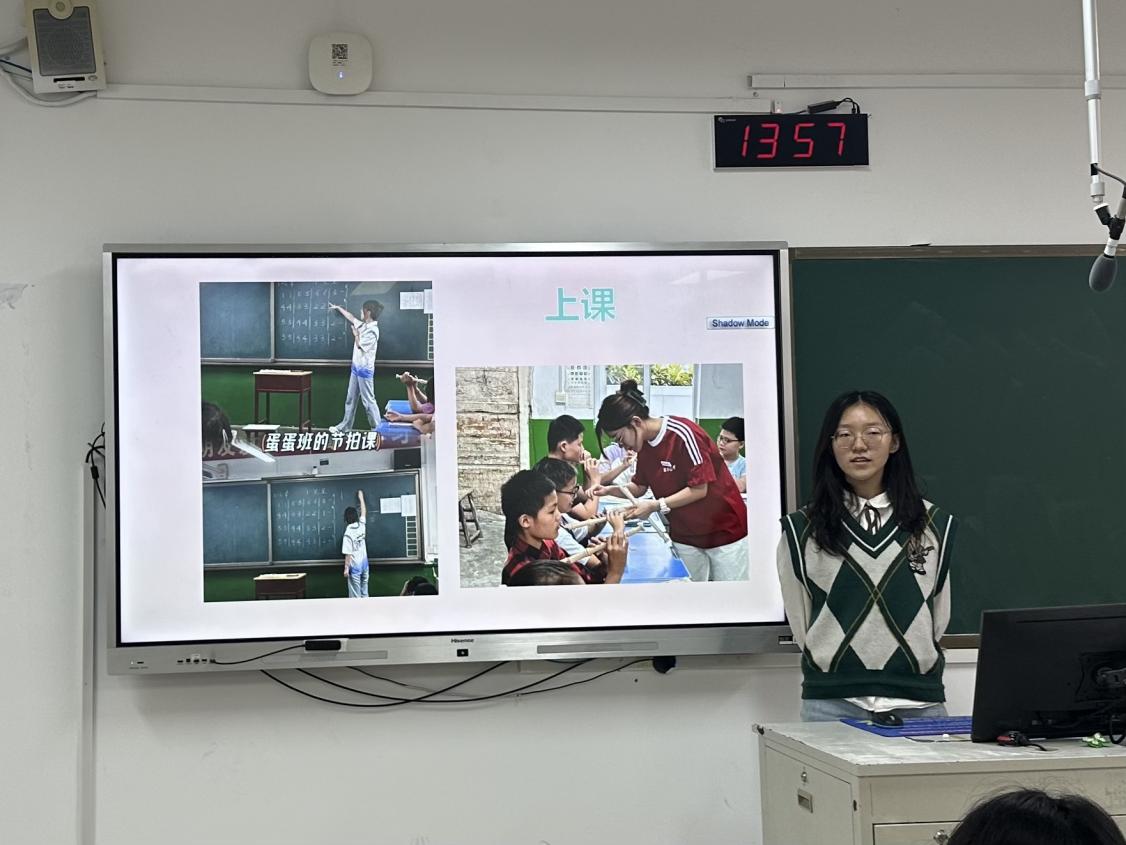 李黄睿同学分享了她阅读的《优质IEP——以特教学生需求为本位的设计与目标管理》,她着重讲解了IEP的概念和IEP的制作流程,提出本书旨在提升特教老师制作以学生需求为本位的IEP质量。最后她分享了一首英文歌曲《We Are The World》并且在黑板上写下:“We are the ones who make a bright day,let us giving.”的英文标语,表达了她对我们特殊教育师范生积极奉献、担当,为特殊学生带去光明的呼吁。