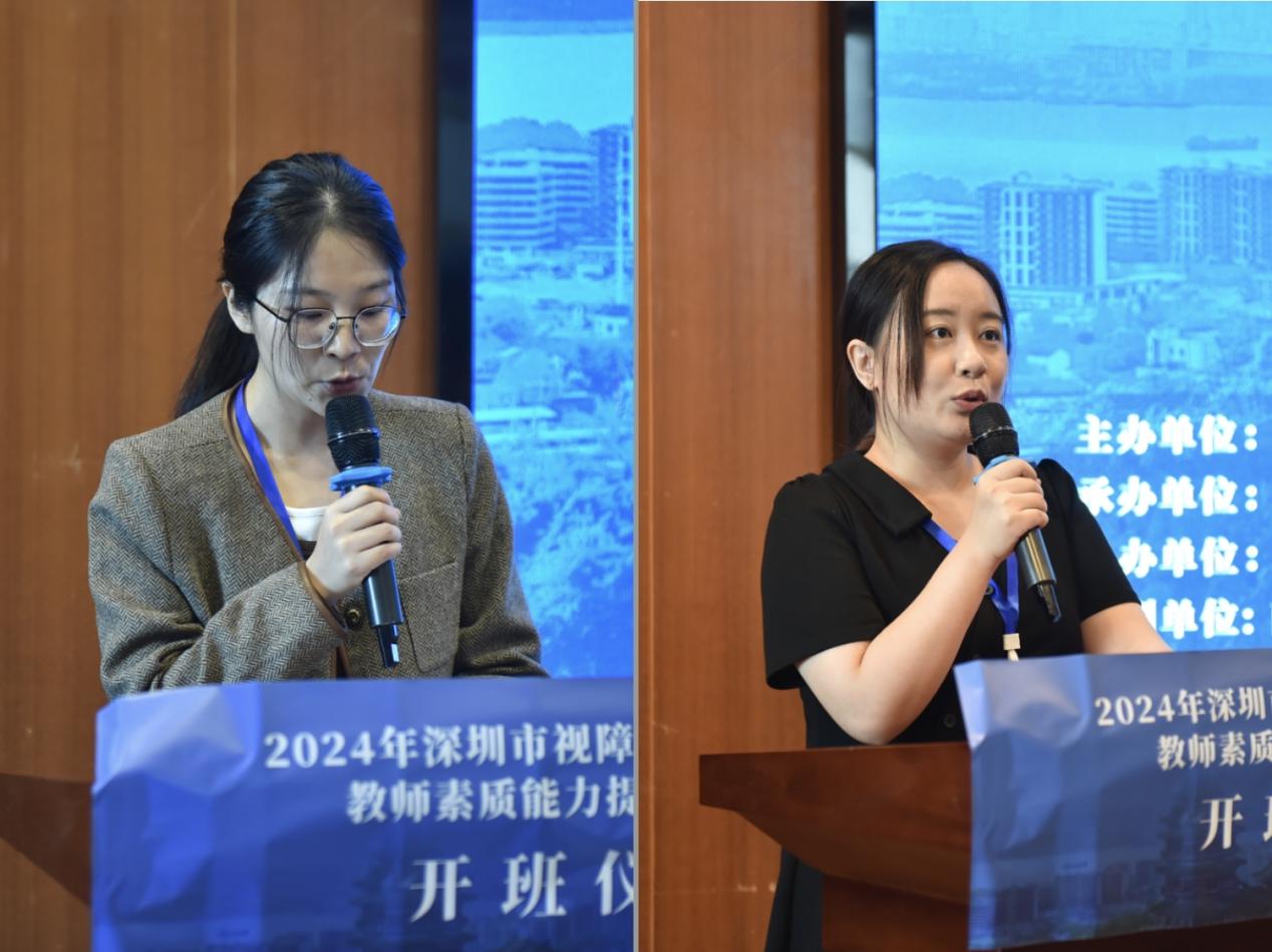 会上,学员代表肖鹏瑶、蒋昀晓两名老师先后发言。她们表示,视障教育是一项充满挑战但又极具意义的事业,能够有机会参加高水平的专业培训,不仅是对个人专业素养的一次全面提升,更是为更好地服务于视障学生、推动融合教育发展的一次宝贵机会。她们将珍惜此次学习机会,积极参与培训活动,努力将所学知识转化为实践能力,为深圳市融合教育事业的发展贡献自己的力量。
