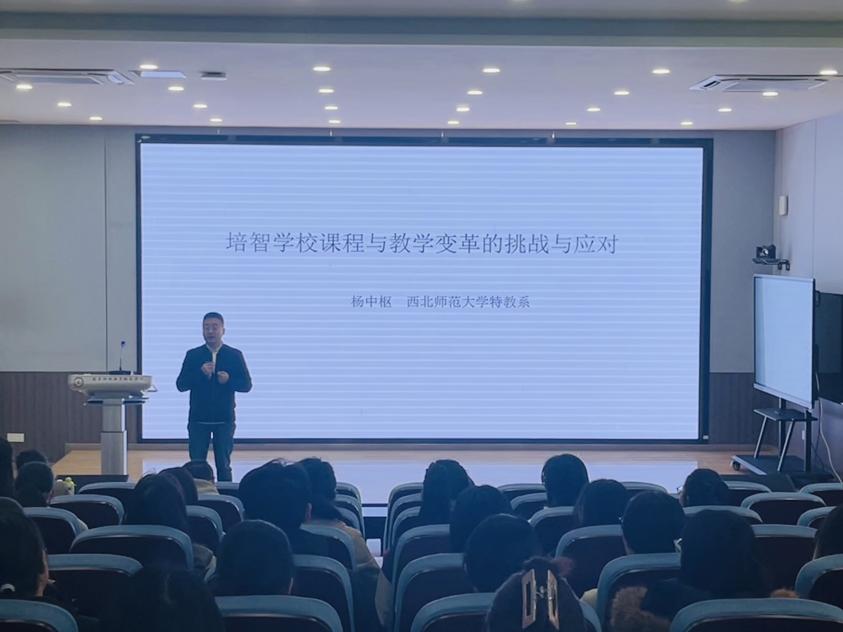 在日新月异的社会进步浪潮中,教育理念的不断革新正引领着教育领域的深刻变革。为深入剖析培智学校课程与教学改革的现状与挑战,永利yl23411集团于11月20日在博远楼106举办了一场题为“培智学校课程与教学改革的挑战与应对”的专题讲座。此次讲座邀请到国内特殊教育领域知名学者西北师范大学教育科学学院特教系主任杨中枢教授担任主讲嘉宾。讲座活动由我院特殊教育系系主任李晓娟副教授主持,特殊教育系本科生及部分学院教师参与了此次讲座活动。