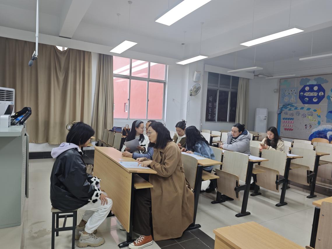 招聘会现场气氛热烈,前期预报名成功的学生携带报名材料在博雅楼2312教室进行现场确认。招聘小组工作人员与报名考生进行现场审核与交流,询问考生的专业成绩、实习经历和个人相关情况,最终确定参加面试的考生名单。