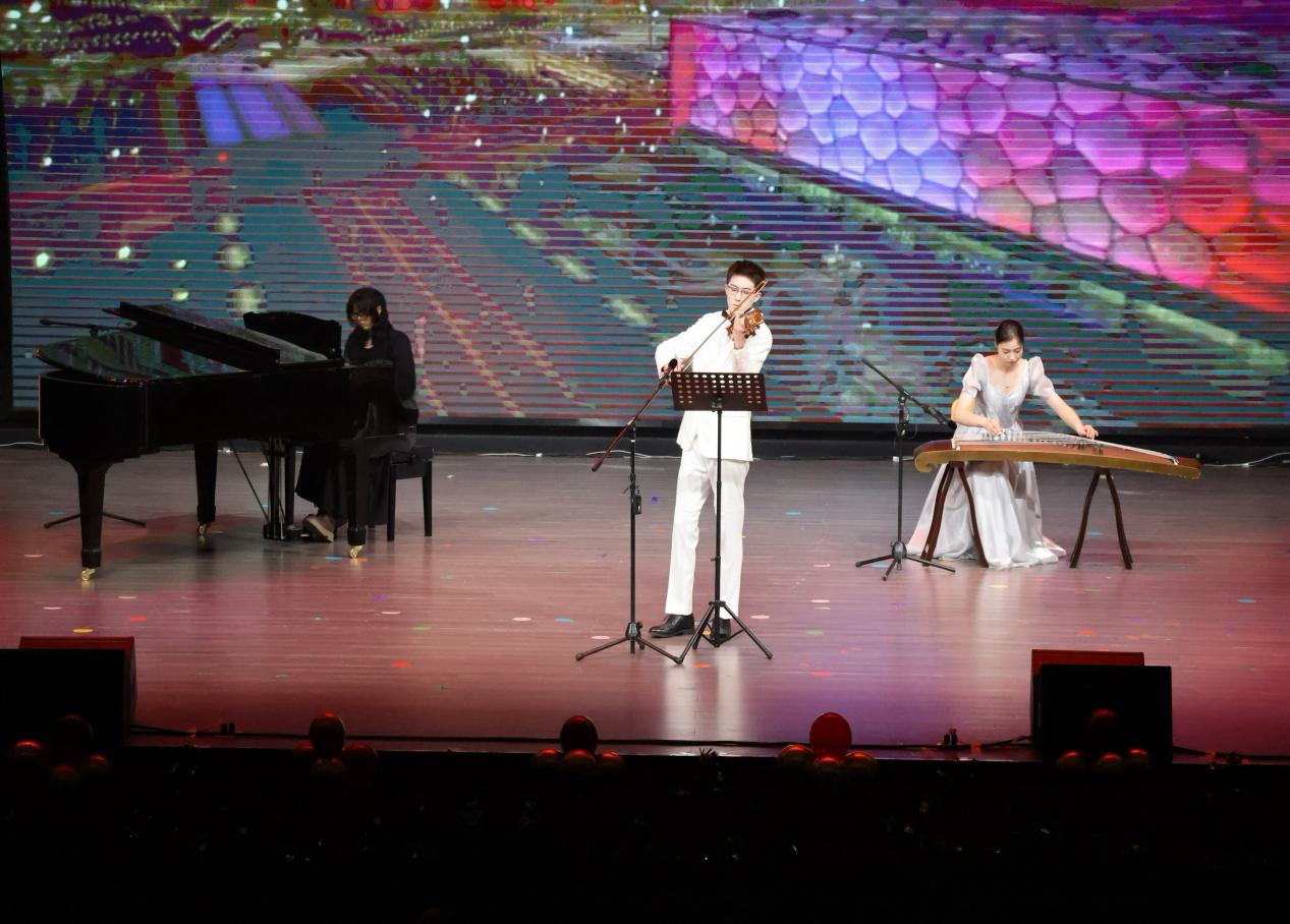 弦音袅袅,拨弹岁月和谐曲;琴瑟和鸣,共谱华章传雅韵。当弓弦轻颤、琴键灵动,器乐合奏《我爱你中国》的旋律悠然响起。弦音悠扬婉转,似在诉说着对祖国山河的眷恋;琴声清脆明亮,仿若晨曦洒落,照亮祖国的每一寸土地,共同编织出一幅饱含深情的音乐画卷,让聆听者感受到对祖国炽热的爱。