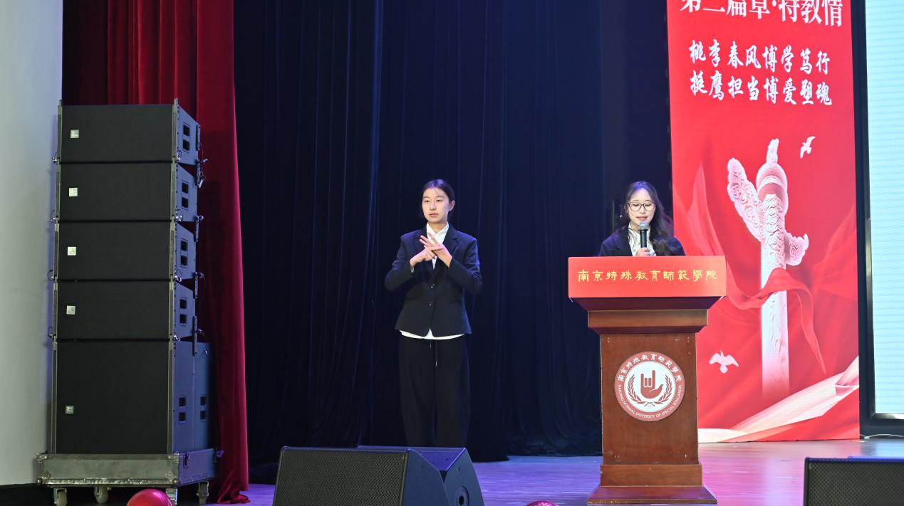 照亮残障心灵暗夜,划行特教希望长河。第三篇章第二个节目是2024年江苏省志愿服务项目大赛金奖项目路演汇报。此次汇报现场还原了金奖项目大赛时的路演现场。《融爱手语桥—国家通用手语与助聋志愿服务》项目自2013年启动,依托手语翻译专业,组织了学院手语翻译、特殊教育专业青年大学生,共同发挥专业特长和志愿热情,连续11年奔赴全国各地采集地方自然手语,推广国家通用手语,用无声的手语搭建起聋人与健听人群之间无障碍沟通的桥梁。同时团队成员坚持不懈参与其它各类助聋社会实践和志愿服务,用心用情服务、关爱聋人群体,向社会传递残健融合和无障碍理念,为构建残健共融的和谐文明社会贡献青春力量。此次路演汇报旨在激励更多同学们,努力学习专业本领,勇于担当青年使命,在社会实践和志愿服务中实现人生理想、展现青春价值。