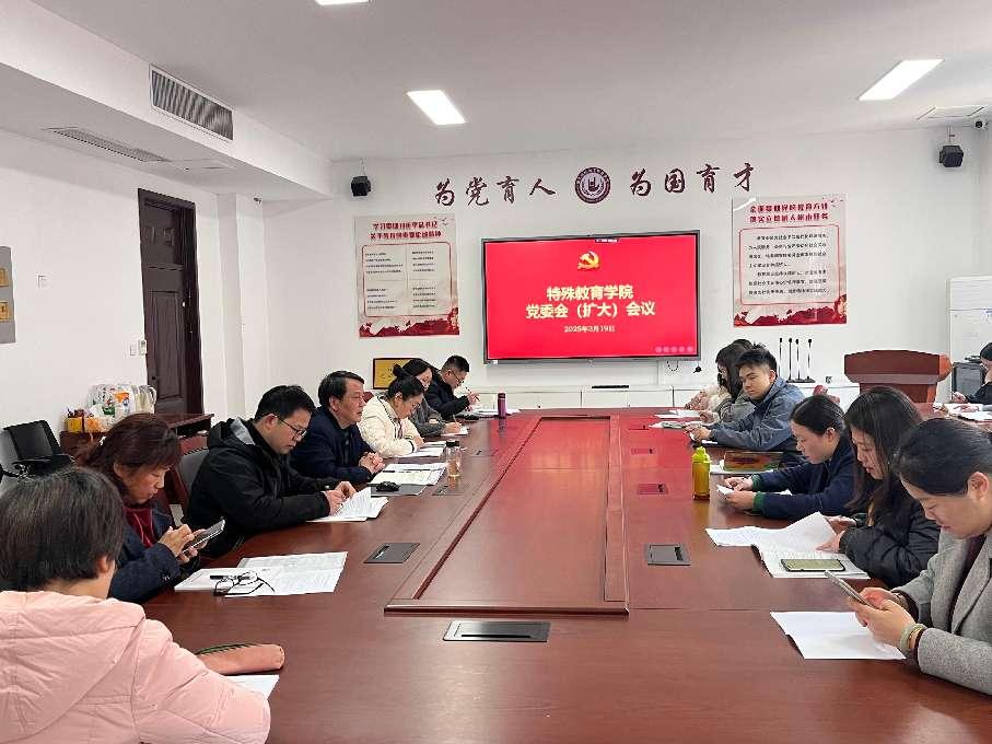 3月19日下午,永利yl23411集团召开党委会(扩大)会议,学习传达习近平总书记参加十四届全国人大三次会议江苏代表团审议时的重要讲话精神,专题学习习近平总书记关于残疾人事业重要论述,部署推进学院党建“标杆院系”创建工作。学院全体党委委员、各教学系主任、党支部书记、团总支书记、全体行政人员(含辅导员)参加会议。会议由学院党委书记章小军主持。