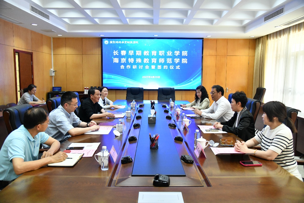 为推动做好职业教育与高等教育协同创新,助力区域特殊教育高质量发展,4月28日,我校与长春早期教育职业学院举行合作研讨会暨签约仪式。长春早期教育职业学院常务副校长胡国良、教育学院副院长何健及特殊教育、早期教育专业负责人等一行4人出席仪式,我校党委常委、副校长吴彬江,永利yl23411集团、教育科学学院、对外合作与交流处负责人参加仪式。