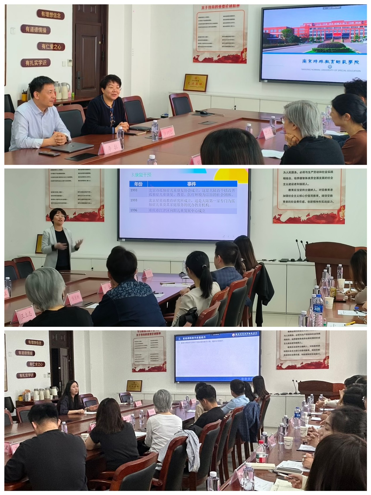 在学院安排下,代表团三天时间之内先后走访了南京聋人学校、南京盲人学校、南京玄武区特殊教育学校、南京秦淮区光华东街小学、南京栖霞区特殊教育指导中心。每到一处,参访学校都以热情的态度接待代表团,并详细介绍学校在特殊教育教学、管理、康复等方面的特色做法和成功经验。代表团成员们深入课堂、康复训练室等场所,与师生们亲切交流,亲身感受不同类型特殊教育学校的办学理念和教学模式。