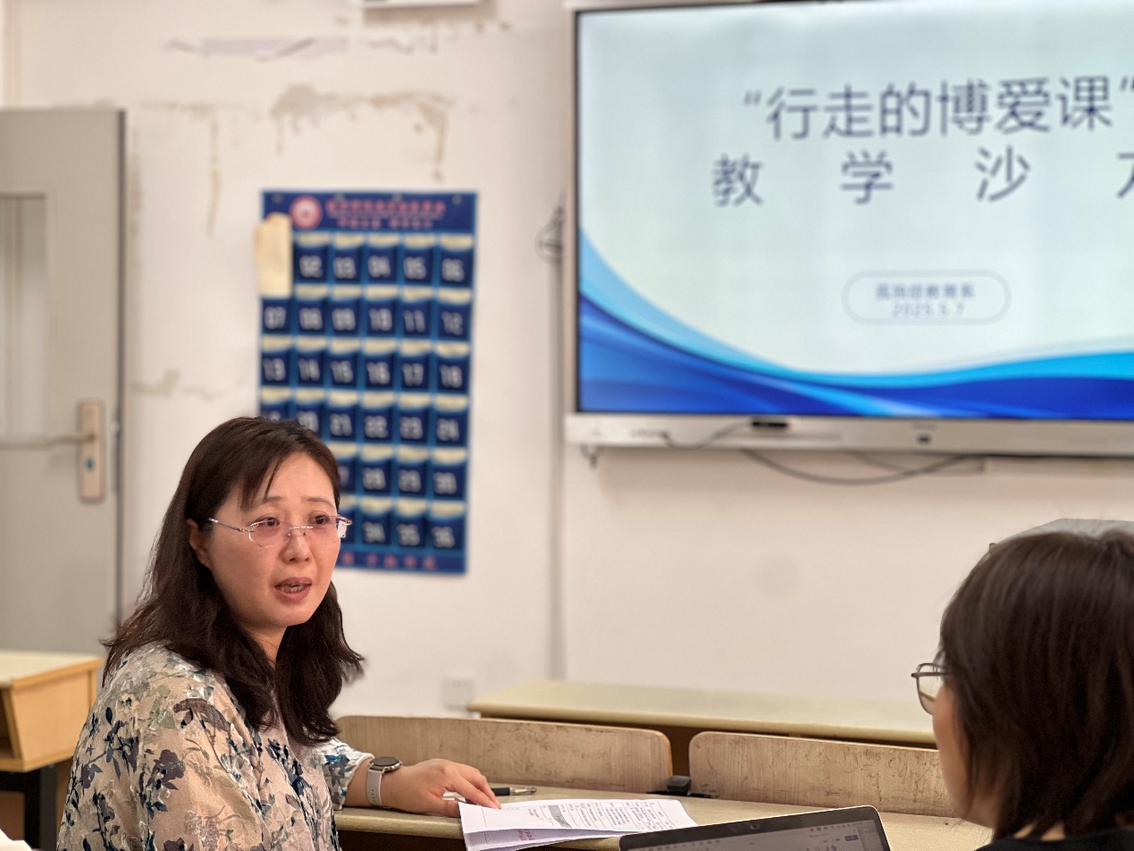 陈阳老师从专业思政教师视角就孤独症儿童教育专业课程思政提出建议,既高屋建瓴又具体可行,为老师们开阔了思路,指明了方向。现场老师表示要在今后的专业课程教学中进一步强化思政教育意识,挖掘博爱元素、创新教学方法,提高课程思政教育实效。慕雯雯老师也将根据陈阳老师的建议修改课程教案,增加博爱元素,并通过现场教学,使学生们在行走中理解教育,在实践中传承博爱。