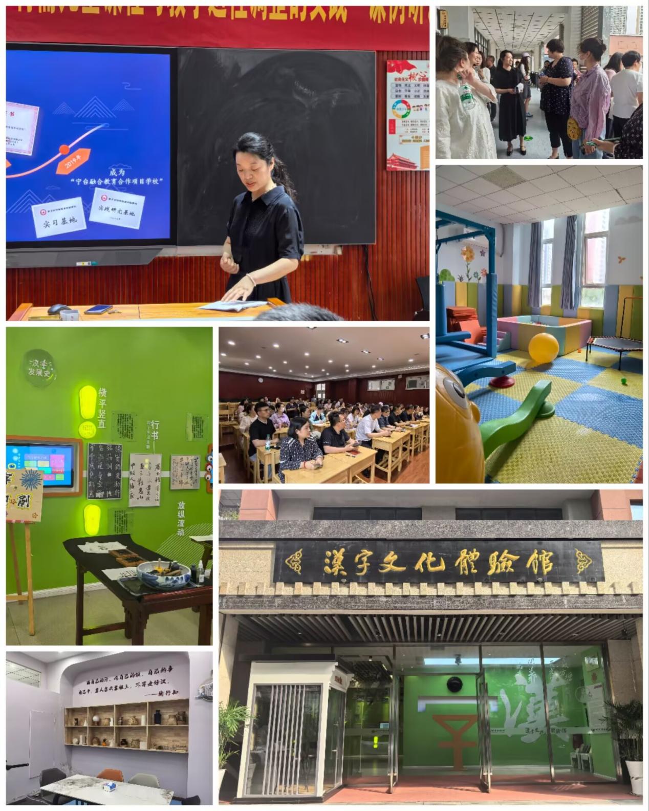 实地参访方面,培训班组织了两次极具针对性的现场教学活动。5月21日下午,参训学员前往南京市丁家庄小学。张勤峰主任以“普通小学开展融合教育的实践与思考”为题,结合丁家庄小学多年来开展融合教育的实践经验,从融合教育理念落地、师资配备、家校合作等多方面进行了深入细致的讲解,分享了在实际工作中遇到的挑战及应对策略,为参训学员提供了宝贵的借鉴。随后,带领学员们参观了学校的资源教室、汉字文化体验馆等特色场所。在资源教室里,学员们看到了为特殊学生量身定制的各类学习辅助器具和个性化教学方案;在汉字文化体验馆里,汉字变成了具体的可操作的实体,融合学生也能在此通过直观感受汉字的韵律美、形体美及立意美,激发学习探究汉字的兴趣。此次参观过程中,学员与学校相关负责人深入交流,共同探索融合教育实践模式。