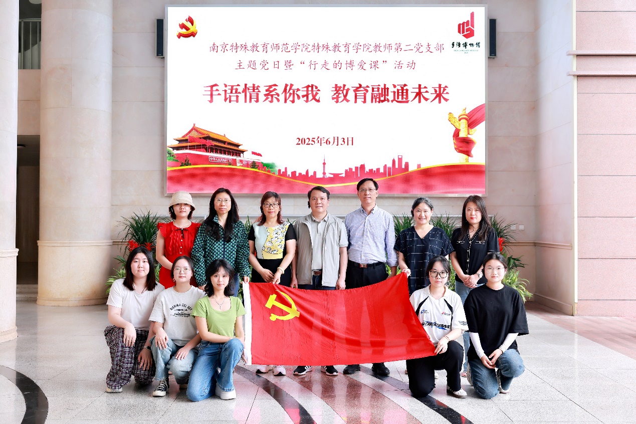 为深入推进思政教育与特殊教育融合发展,6月3日下午,永利yl23411集团教师第二党支部师生代表赴南京市聋人学校开展联合党日活动,重点参观了全国唯一的手语博物馆,并就“行走的博爱课”项目进行深入研讨交流。本次活动旨在通过实地考察与深度交流,探索该项目在促进聋听融合、赋能特殊教育高质量发展中的创新路径。