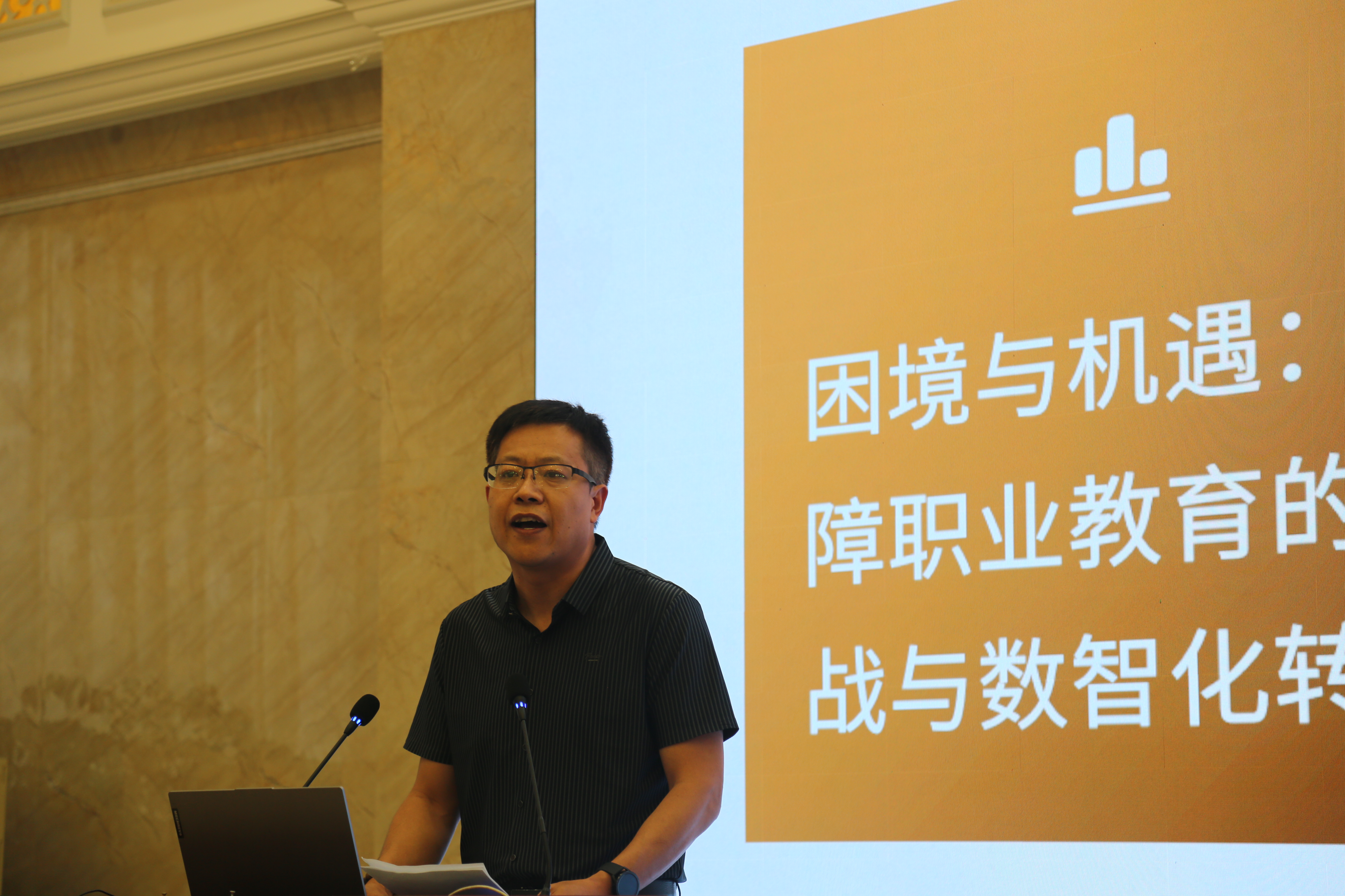 南通特殊教育中心校长徐志辉分享了学校继承张謇特殊教育思想,守正创新,通过“职业群落”专业筑基,“全人教育”文化铸魂,多元赋能跨界实践,建构视障职业教育生态,实现视障学生职业发展、教育创新的多维成效的相关经验。
