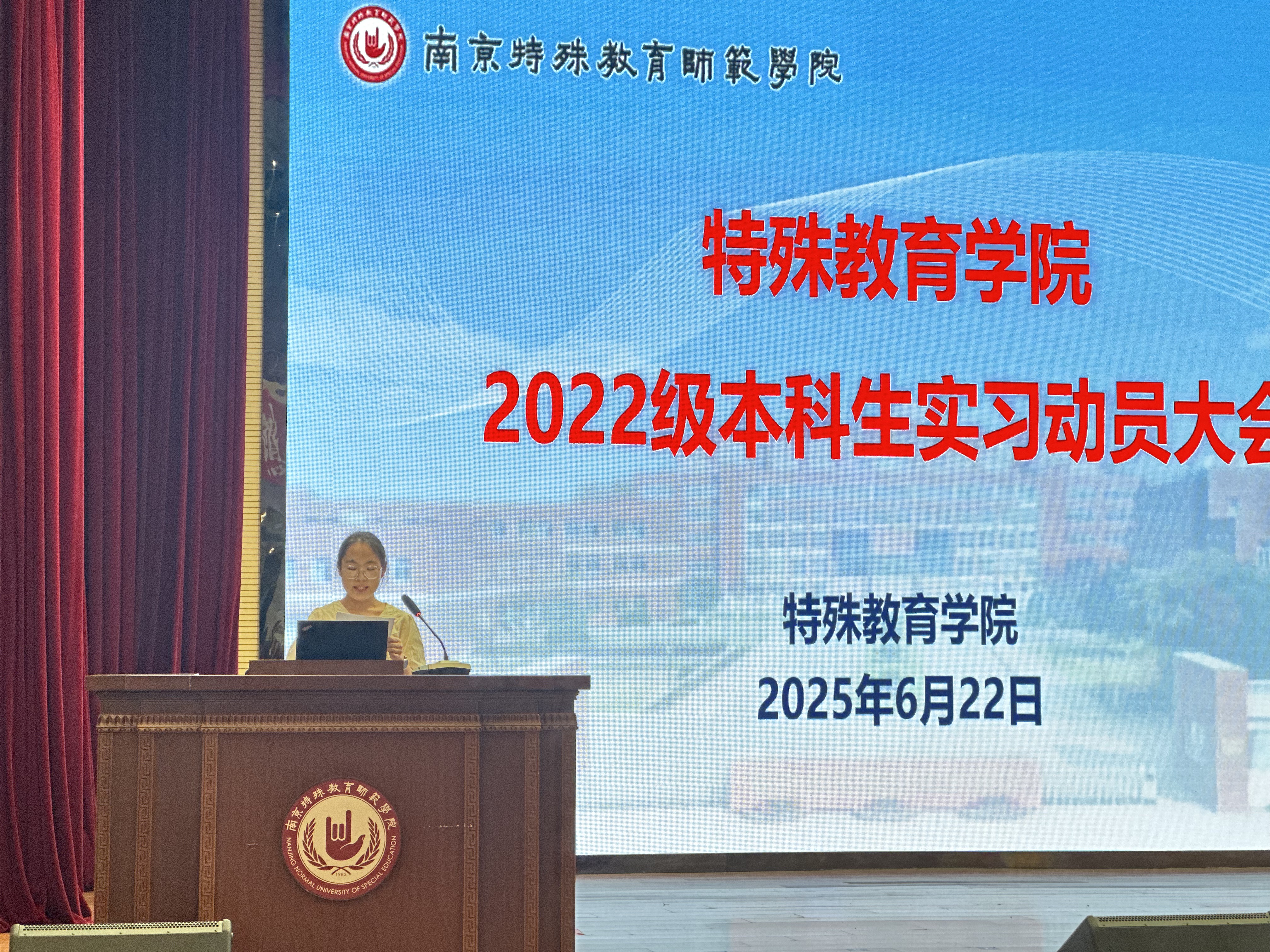 会上,李拉院长首先进行了动员讲话。他强调,实习是高等教育应用型人才培养体系中不可或缺的一环,实习不仅能够使学生将所学知识与实践相结合,提升综合素质,还能够为学生未来的职业生涯奠定坚实基础。李院长指出,学院选择的实习基地都是经过严格筛选的优质单位,希望同学们能够珍惜机会,服从实习学校的纪律,锤炼专业技能,以优秀的表现展示特教学子的风采。
