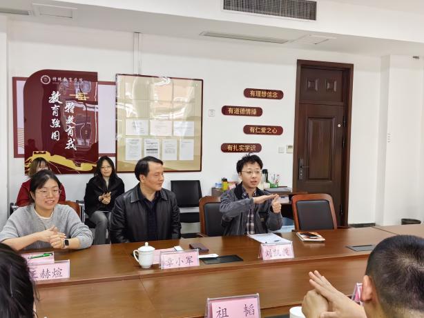 接着,手语翻译专业刘凯毅老师结合个人经历进行分享。他分享了2023年底在录制“妙手生话”节目时,在南京南站取景拍摄了一期“导聋犬”视频,引起了南站工作人员的共鸣;他参与出版的《公共交通领域国家通用手语百句》,旨在帮助业务人员有效与聋人沟通。他表示,“其实不用学多复杂,哪怕只会‘你好’‘谢谢’‘这边走’等手语,对听障朋友来说都是莫大的尊重。”他深入剖析了听障群体的心理感受:“聋人很单纯,只要你是用手语交流,哪怕磕磕绊绊,或者就一两句话后还是用写字交流,聋人就会觉得你是自己人,距离一下子就拉近了。”
