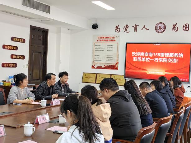 10月23日下午,南京南站158雷锋服务站联盟单位一行到访南特,参观中国特殊教育博物馆并举行交流座谈会。双方就志愿服务专业化及手语推广服务进行了深入探讨。