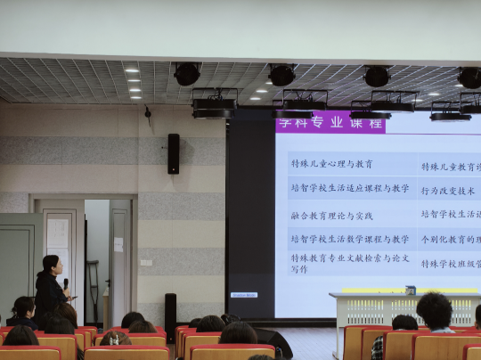 活动伊始,李晓娟老师发表了热情洋溢的致辞。她首先对加入特殊教育大家庭的新生表示热烈欢迎,然后从专业介绍、专业课程、就业与考研、学习规划四个方面展开详细介绍,旨在为学生提供一个全方位、立体化的专业认知平台。
