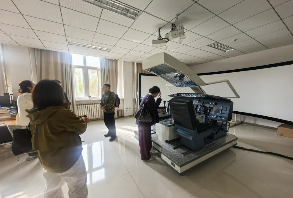 随后,老师们参观了陕西师范大学心理学院的重点实验室与实践教学示范基地。实验室负责人细致讲解了实验室群与学生实践平台的总体规划、功能布局与运行机制。其中,学院极具代表性的航空航天心理学实验室尤为引人注目,该方向聚焦于特殊环境下的个体认知表现、人机交互效率、人员选拔与训练等前沿问题,配备了高性能飞行模拟舱、眼动追踪系统、生物反馈仪、虚拟现实情境创设平台等先进设施,支撑着国家级的重要课题研究,展现了学院在特色学科方向上深耕细作的强大实力。整个实训中心空间规划科学,各功能实训室分区明确,硬件装备精良且与专业软件系统高度集成,营造出高度仿真的实践环境,其管理的规范化、技术的尖端性以及教研结合的紧密程度,都给前来观摩的我系教师团队留下了极为深刻和震撼的印象。随后,老师们参观了应用心理学专业实验室,详细了解实验室的总体设计、各实验室功能和设备、实验流程及实验教学方法等内容,并进行相关实验设备的体验与深度学习。