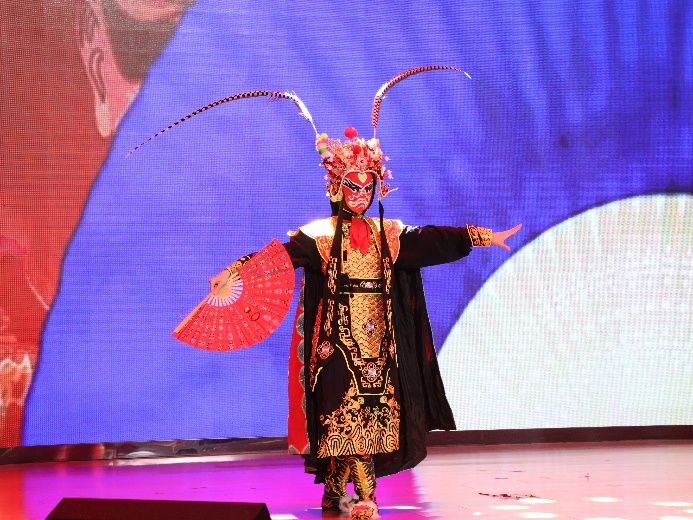 非遗绝技惊四座,变脸乾坤藏匠心。非遗表演《变脸》尽显中华传统技艺的神奇魅力。表演者陶禧手起扇落间,脸谱瞬息万变,红黑青白轮番更替,将川剧变脸的绝技演绎得炉火纯青。每一次变脸、每一个身段,皆是对非遗文化的匠心传承,对传统艺术的创新演绎。更让特教舞台成为非遗文化传播的小阵地,彰显出文化传承的青春活力。