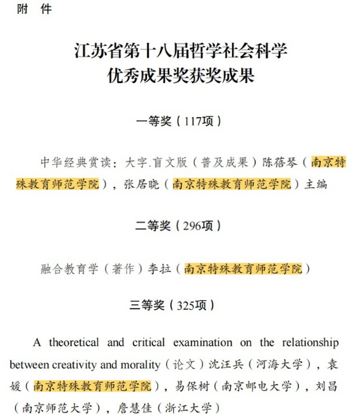 此次获奖成果中,我院三项成果荣列其中,涵盖特殊教育文化传承、融合教育理论建构以及跨学科创新研究,展现了我院在哲学社会科学领域多维度、深层次的科研探索能力。永利yl23411集团将进一步强化使命引领,着力建设跨学科研究团队,加强国际学术对话,推动构建具有中国特色、体现国际影响的特殊教育知识体系与实践模式,为培养高素质特殊教育专业人才、推动我国特殊教育现代化进程作出更大贡献。