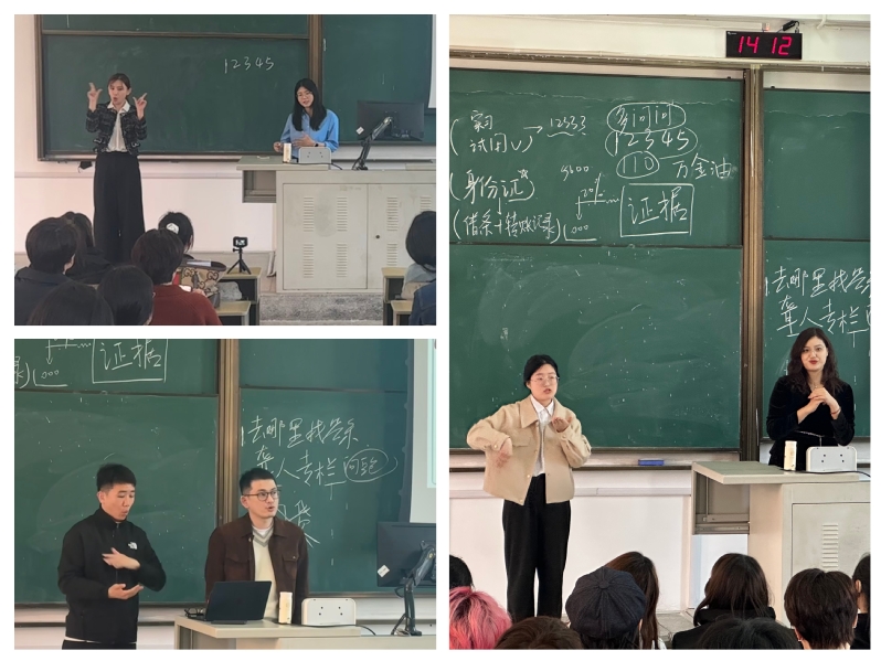 上午在博远楼教室举行专题讲座。在赵晓驰教授的主持下,“白榆手记”的3位资深律师进行了专业分享。公司秉持“让听障人士自信自立、共赴自强”的信念,以“赋能”为核心,致力于搭建一个链接资源、激发潜能的支持型平台。姚思齐律师结合直播实践中聋人遇到的真实法律案例,生动讲解聋人群体步入社会后需注意的法律风险与维权常识;王怡然老师和闫禹律师针对手语翻译专业学生,分别从专业成长和职业发展的角度,阐述了成为手语律师需具备的专业素养与成长路径。尤其是闫禹律师关于职业实战经验的分享,深入浅出地剖析了手语翻译在维权过程中的实践经验与学习建议。尽管每人仅有半小时的分享时间,但内容紧凑、案例鲜活,现场反响热烈。